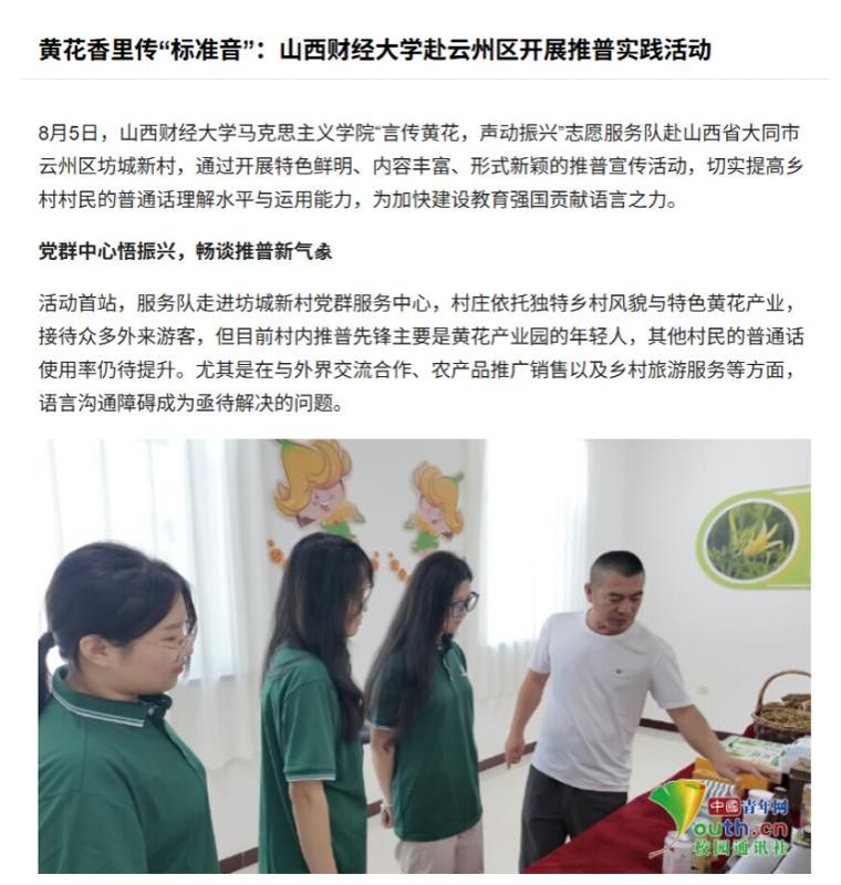 凭借扎实的实践内容与突出的社会价值,我院“言传黄花,声动振兴”实践队获得中国青年网专题报道。这不仅是对实践队服务成效的高度认可,也是此次实践活动社会影响力的生动体现。