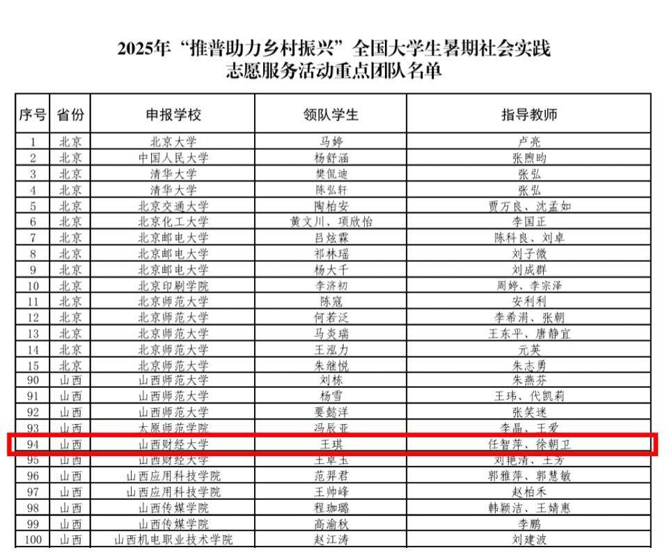在由教育部语言文字应用管理司、共青团中央青年发展部主办的2025年“推普助力乡村振兴”全国大学生暑期社会实践志愿服务活动中,马克思主义学院“言传黄花,声动振兴”实践队成功入选全国重点团队,成为我校入选的两支重点团队之一。
