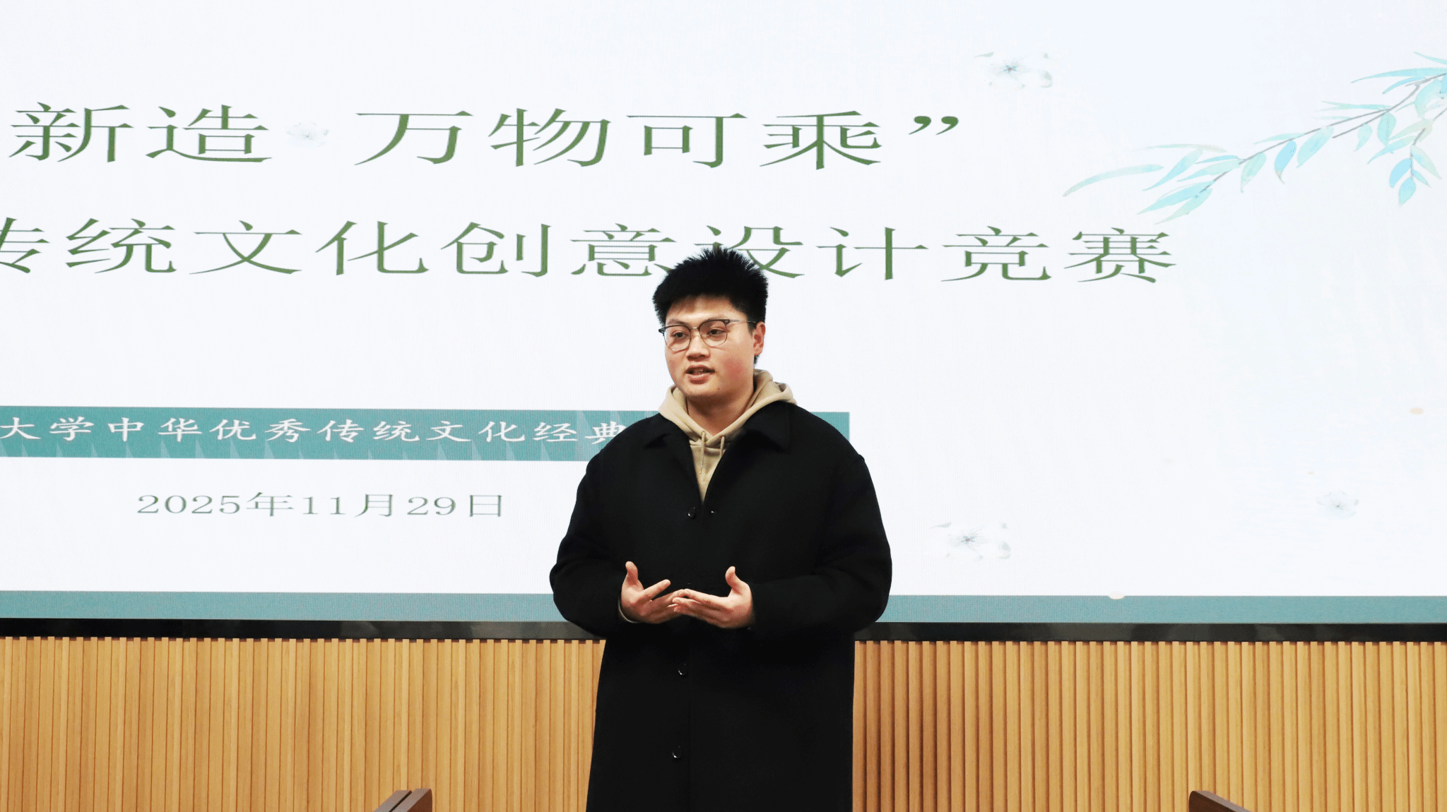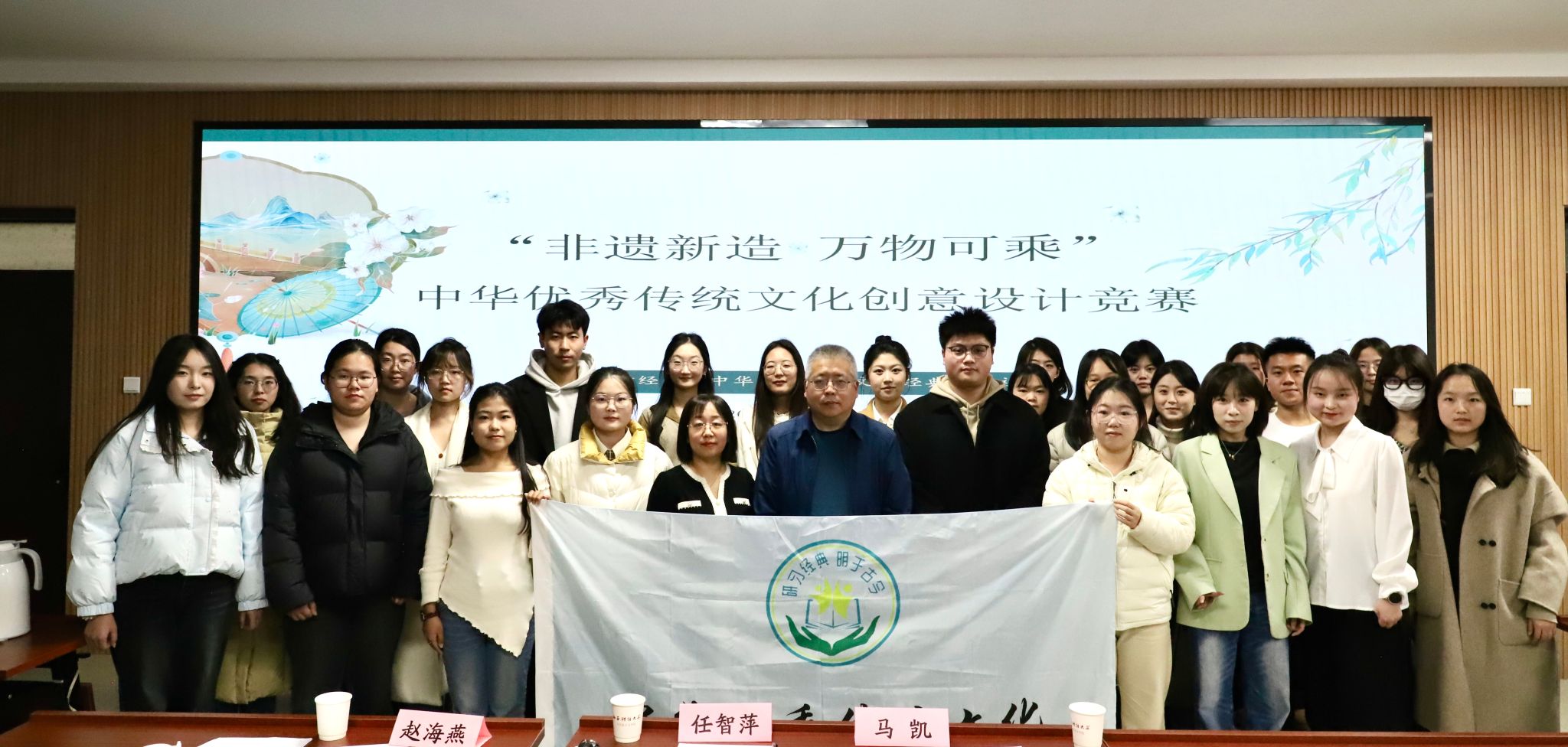 为深入学习贯彻习近平文化思想,推动中华优秀传统文化在校园内实现创造性转化与创新性发展,引导青年学生厚植文化自信、传承非遗文脉,11月29日,“非遗新造·万物可乘”中华优秀传统文化创意设计竞赛在马克思主义学院会议室顺利举办。中华优秀传统文化经典研习社指导教师任智萍、赵海燕老师和学生社团联合会主席马凯担任评委,13组优秀选手同台竞技,用创意为非遗注入时代活力。