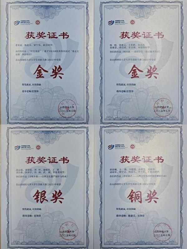 近日,山西财经大学大学生创新创业大赛(2025)获奖名单正式公布。我院师生凭借扎实的专业功底和卓越的创新能力,在众多参赛作品中脱颖而出,共斩获金奖2项、银奖1项、铜奖1项。我院团委书记任智萍老师获“优秀指导教师”。