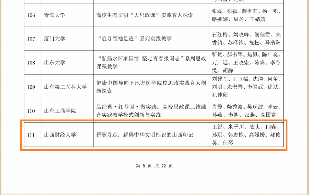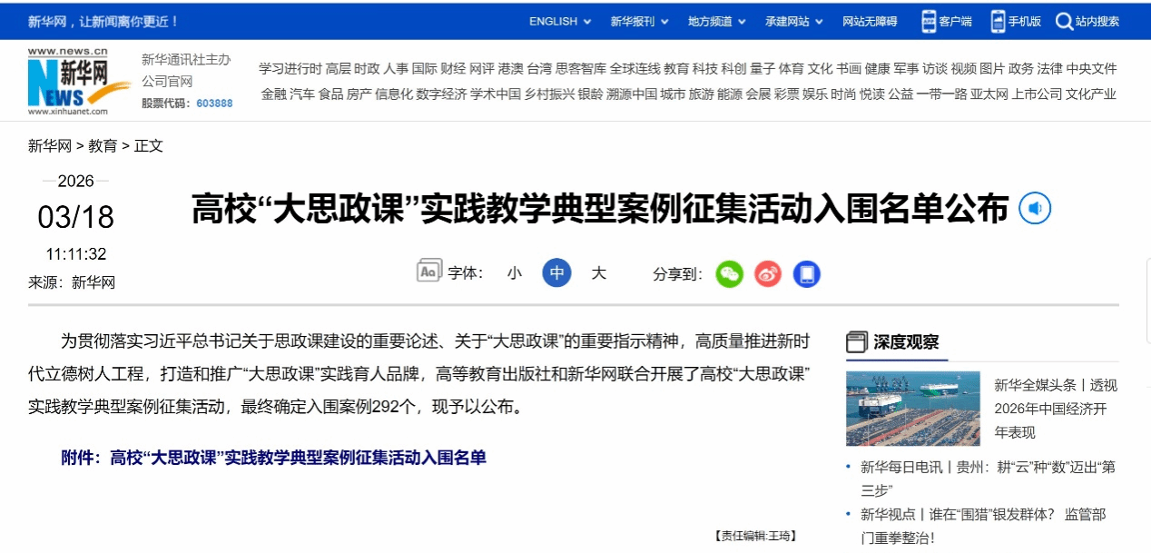 为纪念习近平总书记2019年3月18日在学校思想政治理论课教师座谈会上的重要讲话发表7周年,深入贯彻落实习近平总书记关于思政课建设的重要论述、关于“大思政课”的重要指示精神,新华网于3月18日公布了全国高校“大思政课”实践教学典型案例入围名单,我校马克思主义学院教师王锐牵头申报的《晋脉寻踪:解码中华文明标识的山西印记》实践教学案例成功入选本科教育组入围名单。